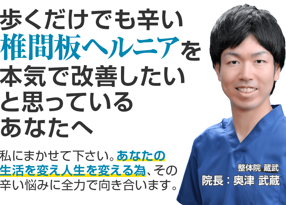 - 病院や整骨院などいろいろ通ったが、椎間板ヘルニアが改善する気配がない、、、