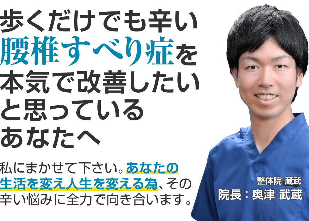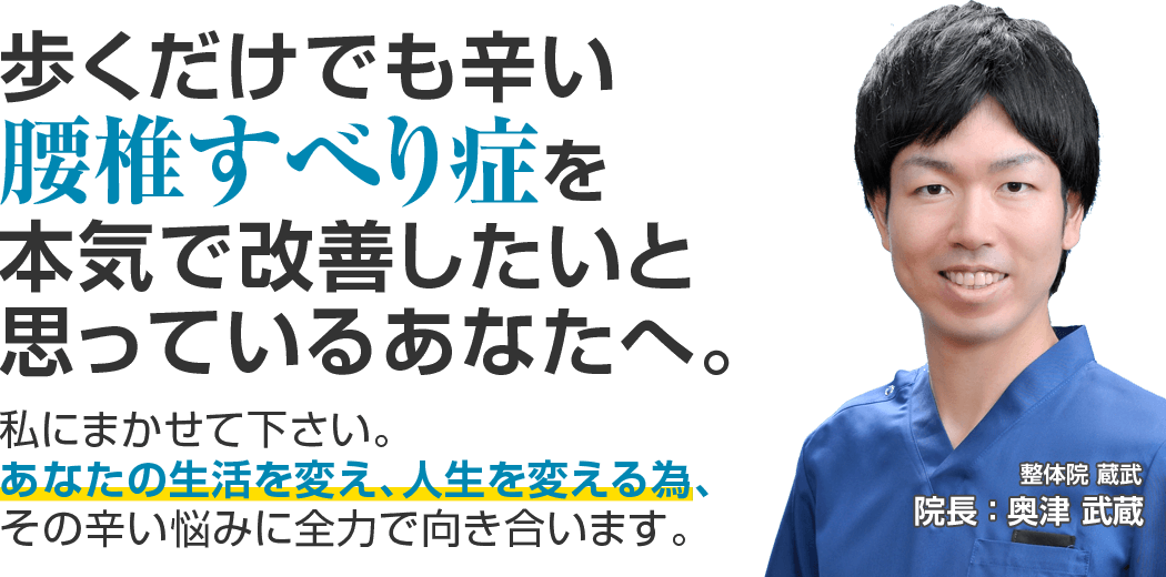 私はこれまで大変多くの腰椎すべり症で悩まれているお客様に携わってきました。その中で培った技術でどうしても「効果があまり感じられない…」と思った場合は、初回の施術が終わった時点でお伝えください。