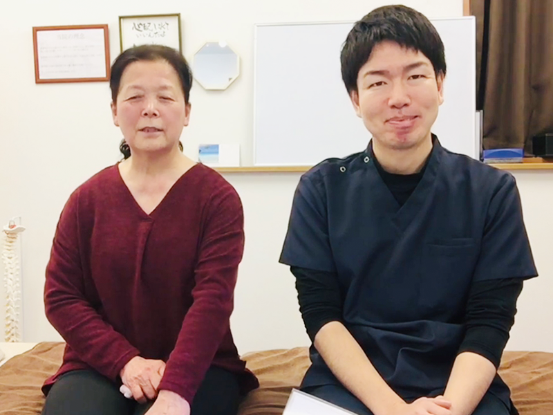 | 本人のコメント | ここまで変わるとは思わなかった。今まで腰ばかり施術されていたが、こちらでは腰に触れずに痛みが消えた。これまでの時間が何だったのかと思うほど感動した。 |